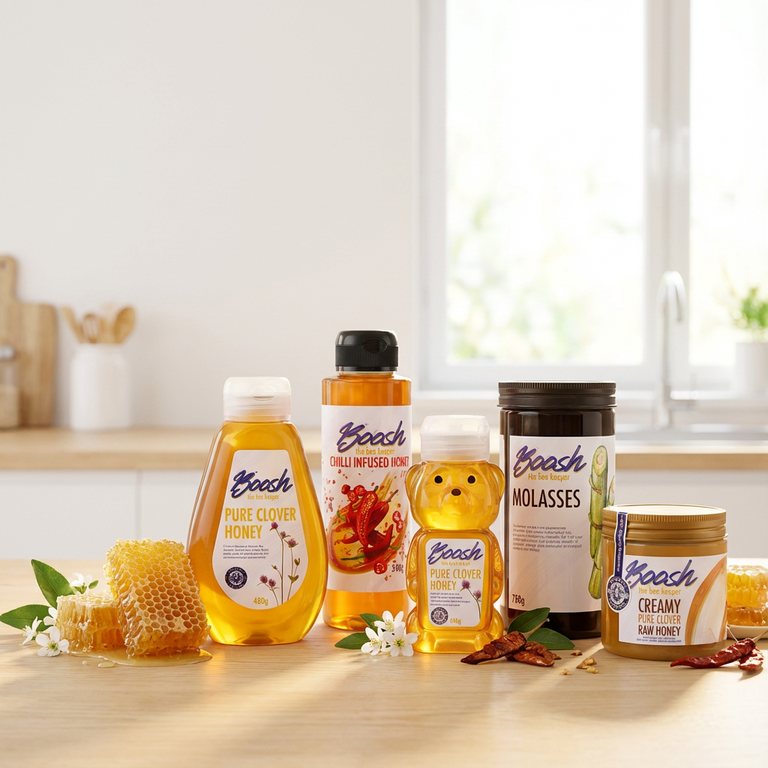 Boosh The Beekeeper is a family-run Egyptian brand dedicated to producing pure, raw honey without artificial additives. Their offerings include a variety of infused honeys, such as creamy cinnamon, pistachio, hazelnut, and ginger–lemon blends. Committed to sustainability and natural beekeeping practices, Boosh ensures that their bees thrive in a healthy environment, resulting in high-quality honey products.